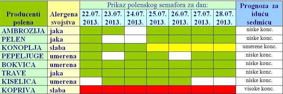 koncentracije polena koje mogu izazvati veoma jake alergijske