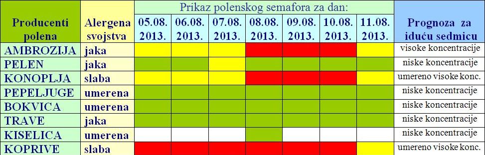 koncentracije polena koje mogu izazvati veoma jake alergijske