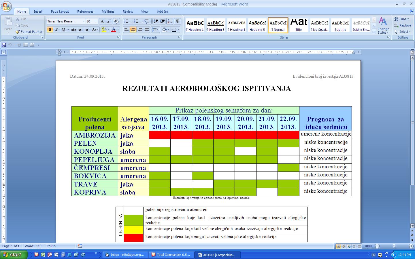 koncentracije polena koje kod izuzetno osetljivih osoba mogu