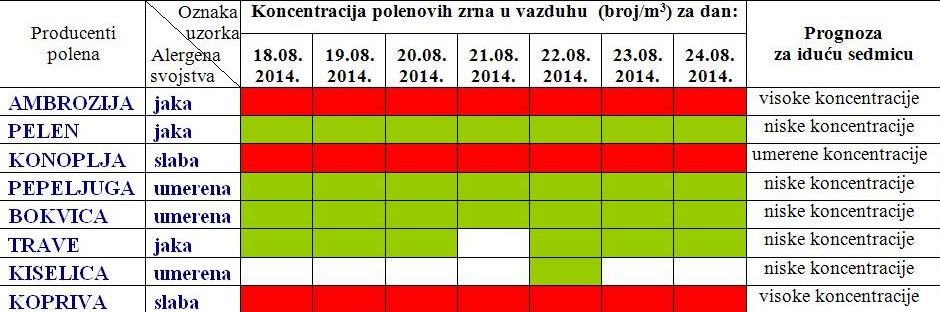 koncentracije polena koje mogu izazvati veoma jake alergijske