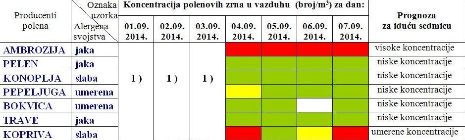 Napomena – 1) Zbog tehničkih problema, ne postoje podaci za 1.,2. i 3.09.2014.