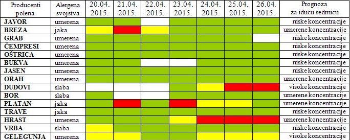 Napomena – 2) Zbog tehničkih problema, ne postoje podaci o stanju polena 9.10.2014.