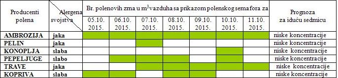 koncentracije polena koje mogu izazvati veoma jake alergijske