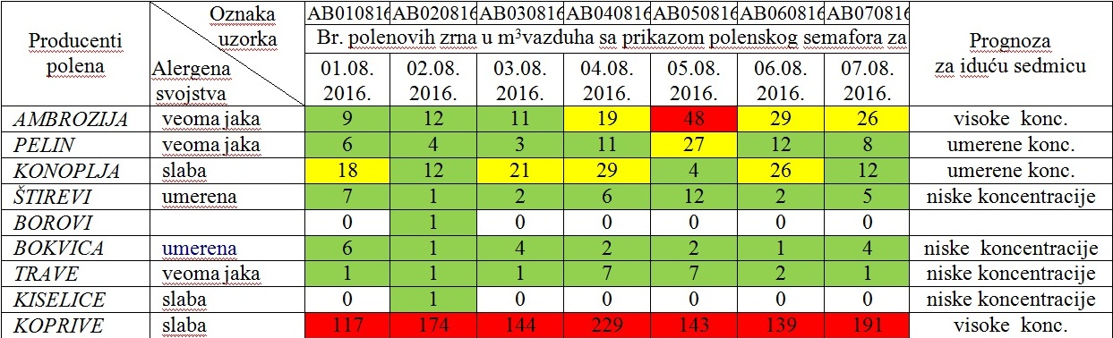 koncentracije polena koje mogu izazvati veoma jake alergijske