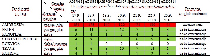 koncentracije polena koje mogu izazvati veoma jake alergijske reakcije