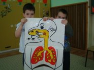 Ilustrovano prikazani organi disanja iz radionice „Sitem disanja“ i tokom prikaza sledi razgovor kako možemo očuvati - oštetiti ove organe.